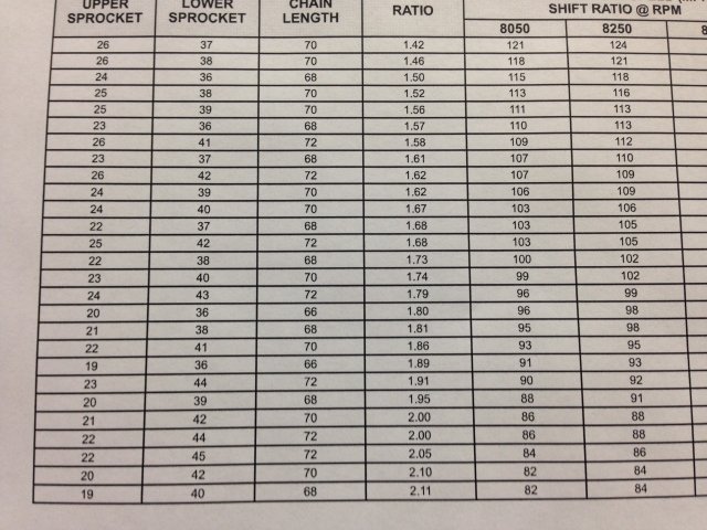 Understood outcast. [emoji106]It just wasn't clear that you wanted the chart for future shop reference and not just a quick check of speed and RPM for a specific gear combo/ratio. If you get one make sure you post is in this thread as I'd like to have a shop copy as well.