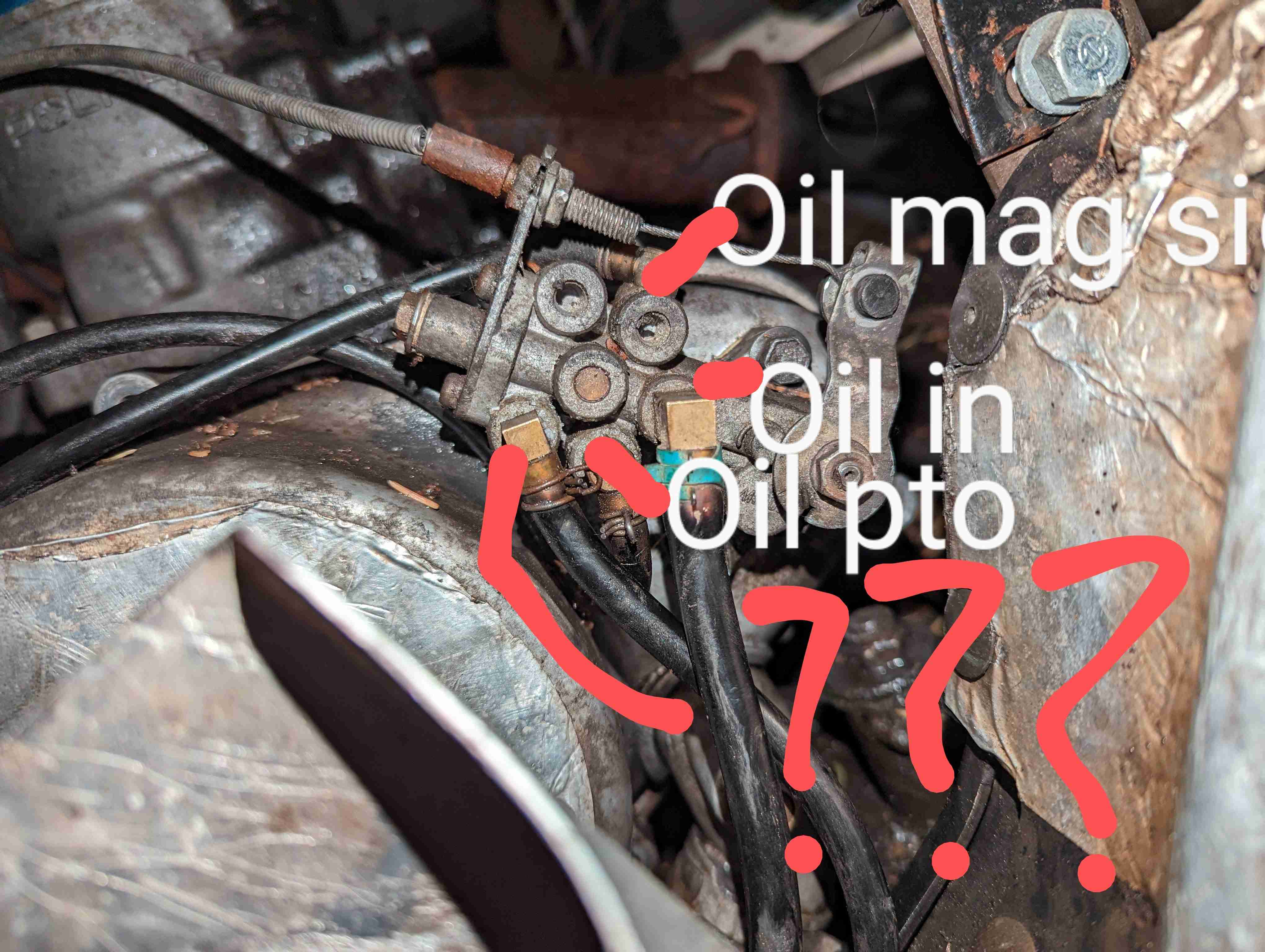 While taking off the Recoil to rebuild from a broken pull cable. the oil line became disconnected on the other end I have been able to trace where the other one could go I have an oil in, a PTO side oil line to the block, and a mag side of the block. can not find a place this could have slipped off. working on a 97 RMK 700.